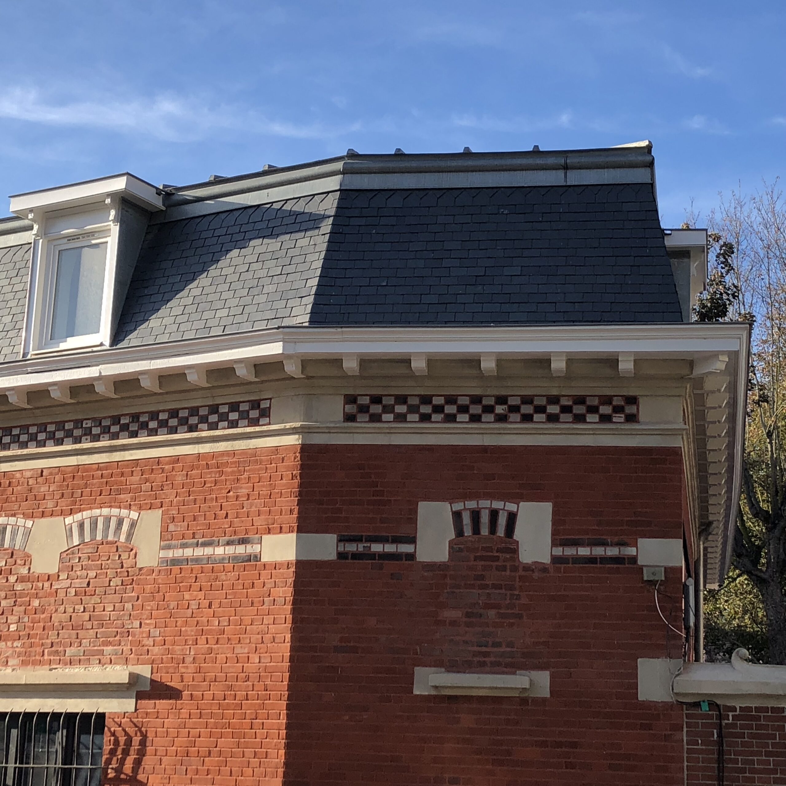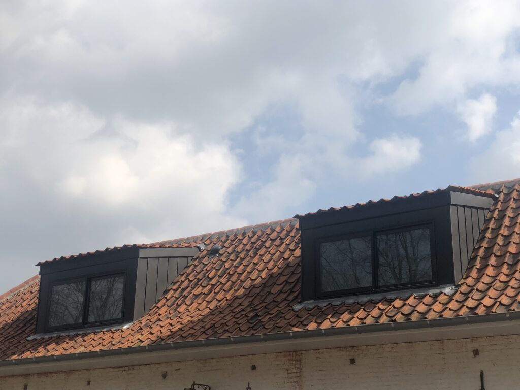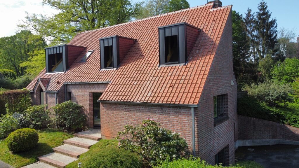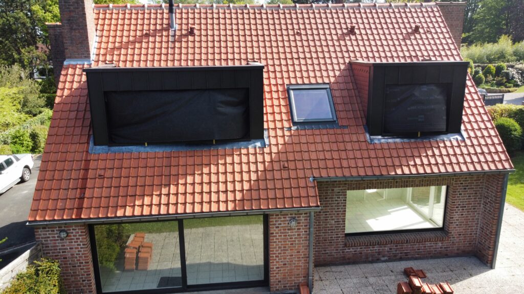 Réfection de la toiture tuile, rénovation des lucarnes et jouées de lucarne en zinc quartz, réfection des chéneaux